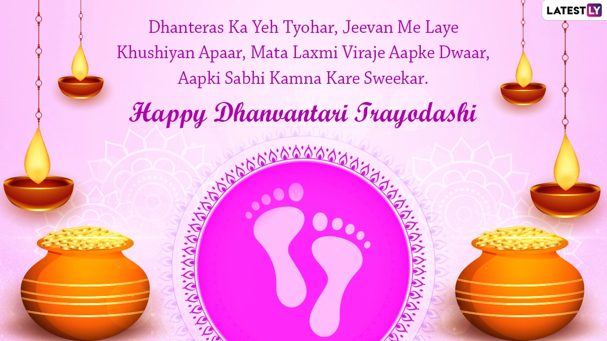 Hindus worship Goddess Lakshmi, Lord Dhanvantari, Lord Kubera (God of wealth), and Yamraj (God of Death) on the occasion. The word Dhanteras is derived from the words 'Dhan' means wealth in Hindi and 'Teras' which means thirteenth. It is widely believed that Goddess Lakshmi visits the homes of her devotees to fulfil their wishes on Dhanteras. People light lamps through the night of Dhanteras to please Lakshmi and Dhanvantari. You can share these photos of lamps and Hindi messages to extend greetings on the occasion. Happy Dhanteras and Diwali 2020 Wishes: WhatsApp Stickers, HD Images, Shubh Dhanteras Photos, Shubh Deepavali Greetings, SMS and GIFs to Send to Family and Friends.