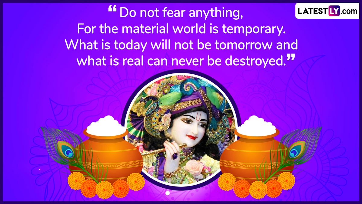 Share meaningful quotes or verses from the Bhagavad Gita or other scriptures that reflect the teachings of Lord Krishna. For instance, "In the world, I am the taste of water, the light of the moon and the sun, the syllable 'Om' in the Vedic mantras; I am the sound in ether and the ability in humans." Share images or e-cards with Krishna's divine images along with your wishes. These visuals add a festive touch to your greetings.