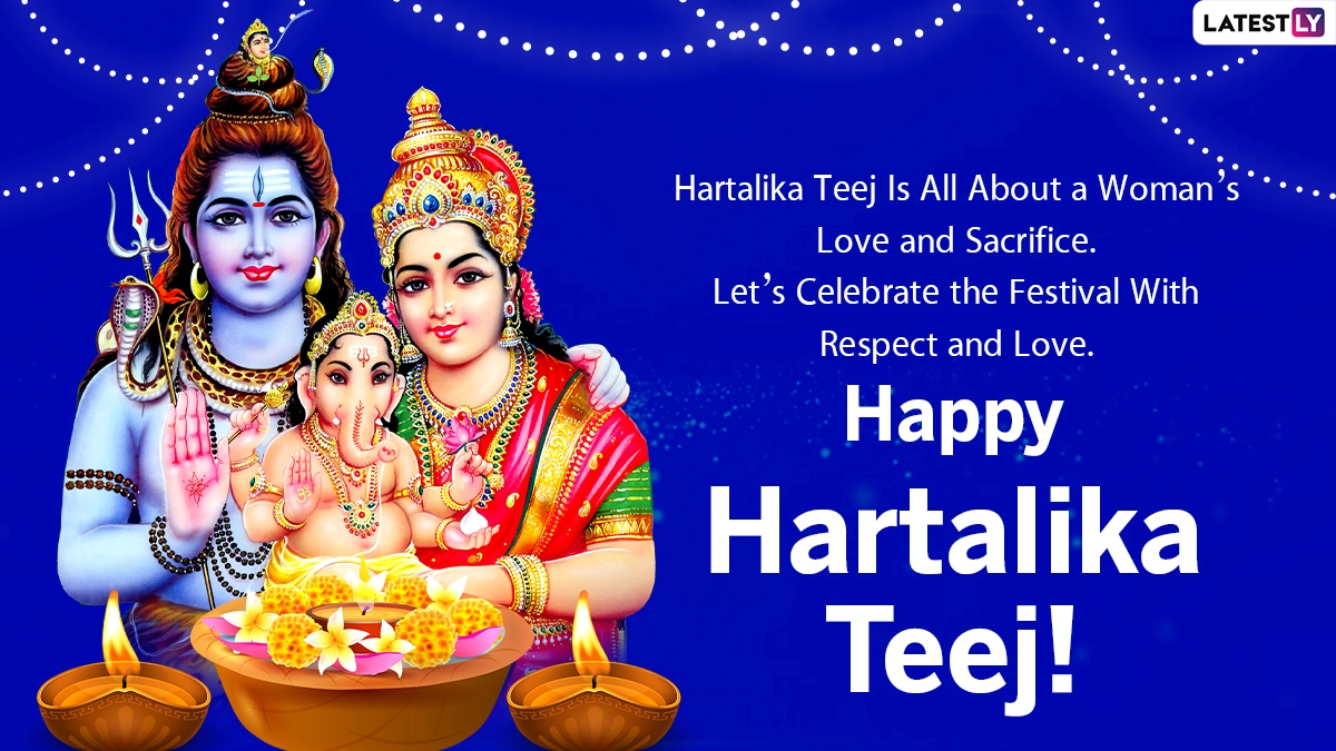 Hartalika Teej is one of the important celebrations for married Hindu women praying for the well-being of their husbands and family. This year, Hartalika Teej 2022 takes place on August 30, Tuesday. On the same day, Gowri Habba is celebrated in the state of Karnataka and Gowri Ganesha festival in Maharashtra. All these festivals are observed in the honour of Maa Parvati. It is observed a day before Ganesh Chaturthi and this year, Ganesh Chaturthi 2022 falls on August 31, Wednesday. As people wish one another on the festival, here's a collection of latest Hartalika Teej 2022 wishes, Hartalika Teej images, Happy Hartalika Teej 2022 greetings, HD wallpapers and more. Hartalika Teej 2022 Images and HD Wallpapers for Free Download Online: Wish Happy Hartalika Teej With WhatsApp Messages, Greetings and Quotes to Family.