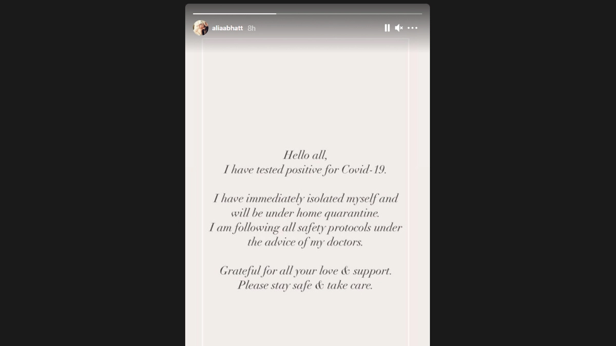 Actor Alia Bhatt has tested positive for COVID-19 and will remain under home quarantine, she confirmed on Instagram. "Hello all, I have tested positive for Covid-19. I have immediately isolated myself and will be under home quarantine. I am following all safety protocols under the advice of my doctors. Grateful for all your love and support. Please stay safe and take care," the actor shared on her Instagram story. Alia Bhatt Diagnosed With COVID-19 After Beau Ranbir Kapoor Makes Recovery.