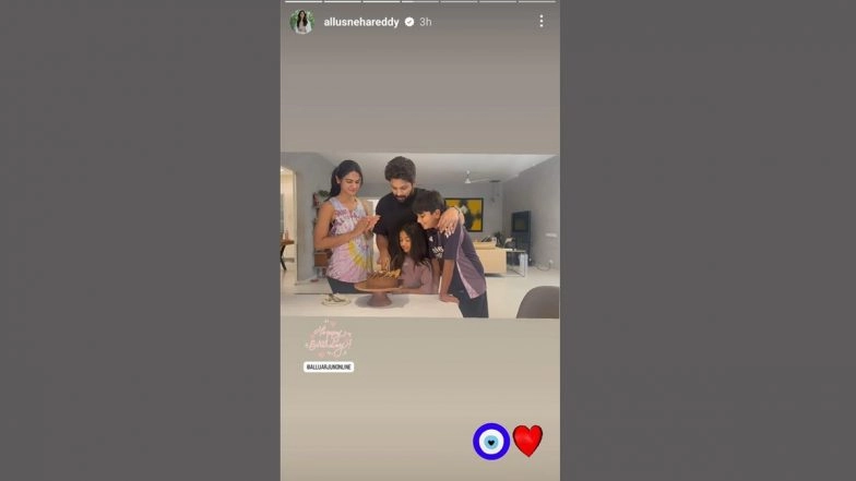 Pushpa star Allu Arjun, who turned 43 on Tuesday, celebrated his special day surrounded by loved ones. His wife, Sneha Reddy, took to Instagram to give fans a glimpse of the cosy and intimate celebration they had at home. In the picture she shared, Allu Arjun is seen cutting a cake, while Sneha, their daughter Arha, and their son Ayaan stand beside him. Allu Arjun Birthday: The Epitome of Modern Masculinity and Style in Indian Cinema.