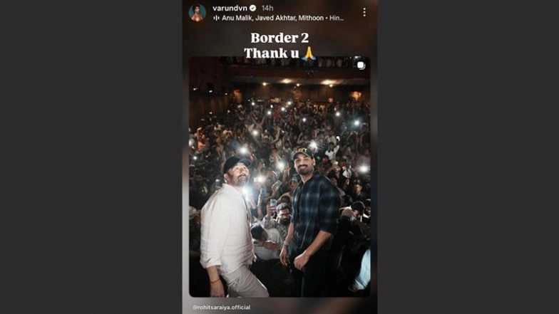 Actor Varun Dhawan expressed his gratitude for the overwhelming response of his fans towards his latest movie Border 2, in which he has played the role of an Indian Army soldier. Sunny Deol Poses With Sisters Esha and Ahana at Special Screening of ‘Border 2’ (Watch Video).