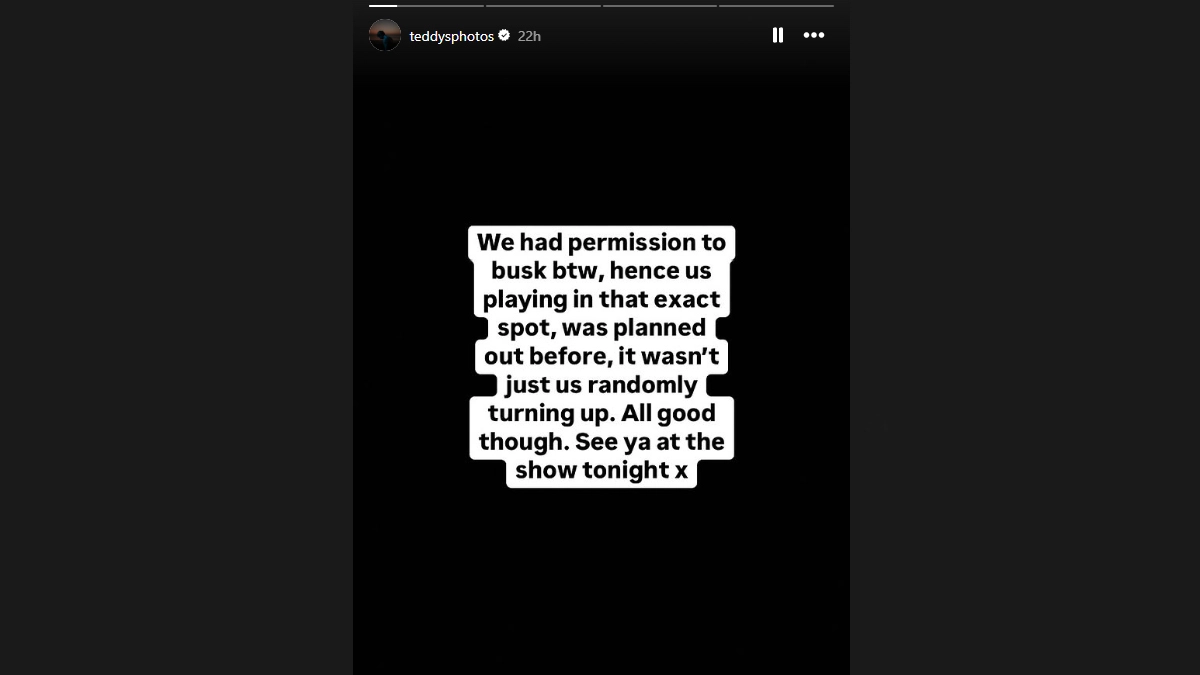 "We had permission to busk, hence us playing in that exact spot, was planned our before, it wasn't just us randomly turning up. All good though. See ya at the show tonight x (sic)" Sheeran wrote on his Instagram Story hours ahead of his second show in Bengaluru.