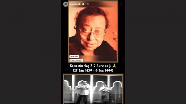 Bollywood versatile actor Jackie Shroff remembered the late legendary singer RD Burman on his death anniversary today. Taking to his Instagram handle, the Yudh actor paid tribute to the singer and shared a small monochrome video of RD Burman performing his iconic song "Duniya Mein Logon Ko" on the stage. ‘Ek Number Bhidu’: Jackie Shroff Still Can’t Get Over Uorfi Javed’s Stylish Chia Seeds Dress, Reposts BTS Video of the Outfit’s Creative Process – WATCH.