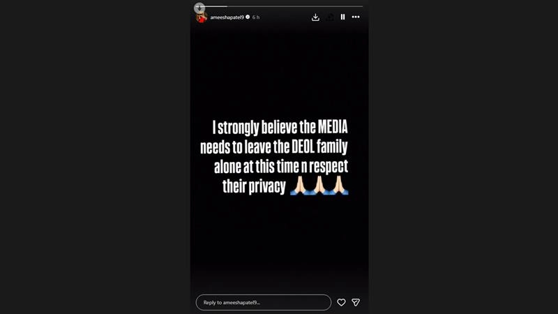 In an Instagram post, Ameesha, who shares a close bond with Deol family, wrote, "I strongly believe the media needs to leave the Deol family alone at this time n respect their privacy."