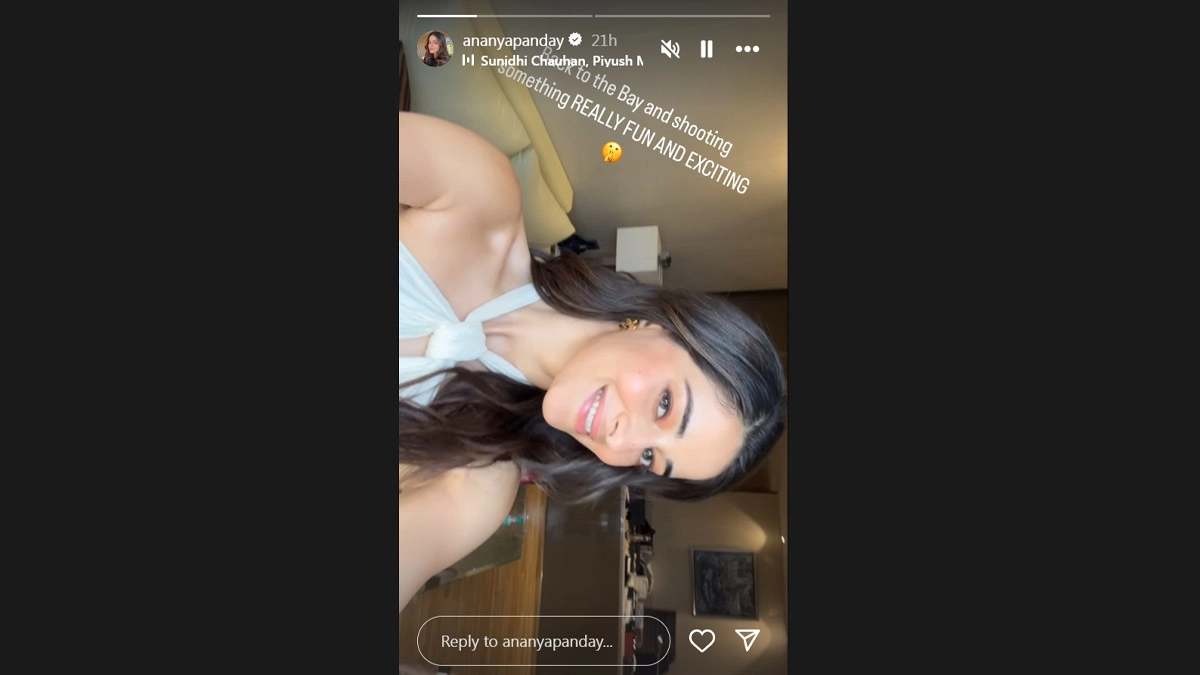 Ananya Panday, who remains highly engaged on social media and frequently updates her fans about her life, recently shared a selfie while providing an update on her latest project. Ananya revealed that she's currently involved in shooting something enjoyable and thrilling. The photo quickly gained traction across social media platforms. On her Instagram stories, Ananya posted a picture of herself posing for the camera, accompanied by the caption, "Back to the Bay and shooting something really fun and exciting." In the picture, Ananya can be seen dressed in a white outfit with subtle makeup. Ananya Panday Misses Her ‘Godson’ Pablo; Actress Asks Shanaya Kapoor To Send Him for ‘Sleepover’ (See Pic).