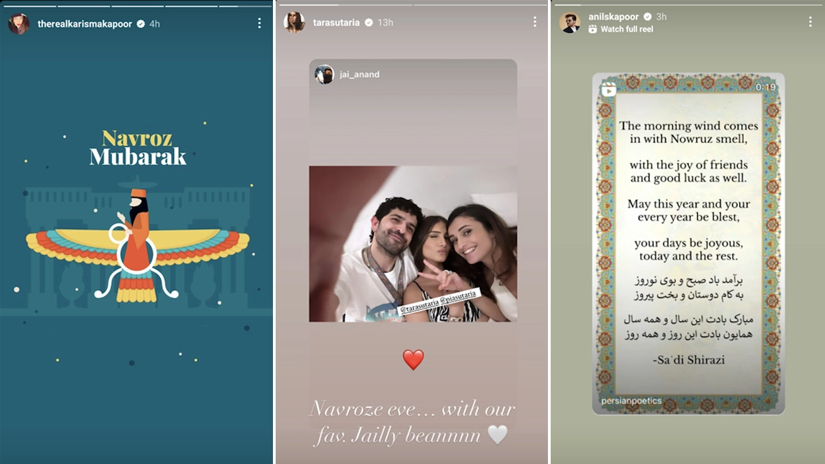 As it's a Navroz today, several celebrities extended the Parsi New Year wishes to their fans. Taking to Instagram stories, Anil Kapoor re-shared a quote to wish his fans. The post read, "The morning wind comes in with Nowruz smell, with the joy of friends and good luck as well. May this year and your every year be blest, your days be joyous, today and the rest." Tara Sutari shared a picture of a table full of food on it and captioned it, "Happiest to be home, engulfed in the family: friendship and food. Saal Mubarak all." Soha Ali Khan and Anil Kapoor Start Off Their Day on a Sweaty Note With a Badminton Session (View Pic).