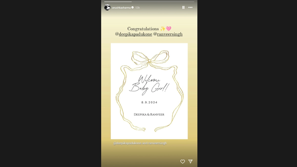 Taking to the Instagram story on Sunday, Anushka re-shared DeepVeer's post and wrote, "Congratulations @deepikapadukone @ranveersingh." Deepika Padukone and Ranveer Singh Welcome Baby Girl; Priyanka Chopra, Shraddha Kapoor and Other Celebs Shower Love on the New Parents.