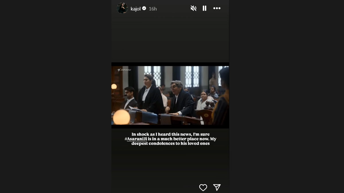 Kajol, who recently worked with Asrani in JioHotstar's web series, 'The Trial', expressed deep shocked on hearing the news. "I'm sure #AsaraniJi is in a much better place now. My deepest condolences to his loved ones."