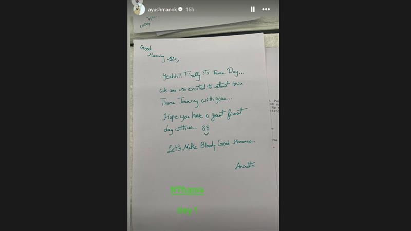 "Dear Ayushmann, It's fang-tastic to have you on board Maddock's horror comedy universe. Who better than Ayushmann' to play the 'un-dead 'THAMA'? We believe this is a role you will love to sink your teeth into! Best Wishes, DV," read the message.