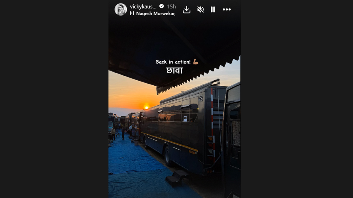 Actor Vicky Kaushal shared a picture from the sets of Chhava. On Thursday, the actor dropped a snap on his Instagram Story and wrote, "Back in action, Chhava." The vanity vans can be seen in the picture. Chhava is directed by Laxman Utekar and also features Rashmika Mandanna. The movie is a historical drama based on the life of Chhatrapati Sambhaji Maharaj, the son of Chhatrapati Shivaji Maharaj. Chhava: Vicky Kaushal Reveals Performing ‘Biggest Action Sequence’ of His Career As He Wraps Up the Film’s Shoot, Shares BTS Pics on Insta!