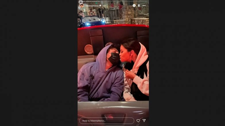Music producer Benny Blanco and actress-singer Selena Gomez spent a fun and romantic weekend together at Disneyland in Anaheim, California. The couple, who have been dating for some time, enjoyed the theme park's attractions with a touch of Disney magic. Taking to his Instagram account on Sunday, Blanco, shared an adorable where the two are seen cozying up on the Radiator Springs Racers ride, a popular attraction from Disney's Cars movie. Both are dressed in hoodies, and Gomez can be seen pulling down her medical mask to kiss Blanco through his mask. Selena Gomez Shuts Down Breakup Rumours With Benny Blanco by Dedicating a Sexy Dance Performance in Little Black Dress at Sabrina Carpenter's 'Short n' Sweet' Tour (Watch Video).