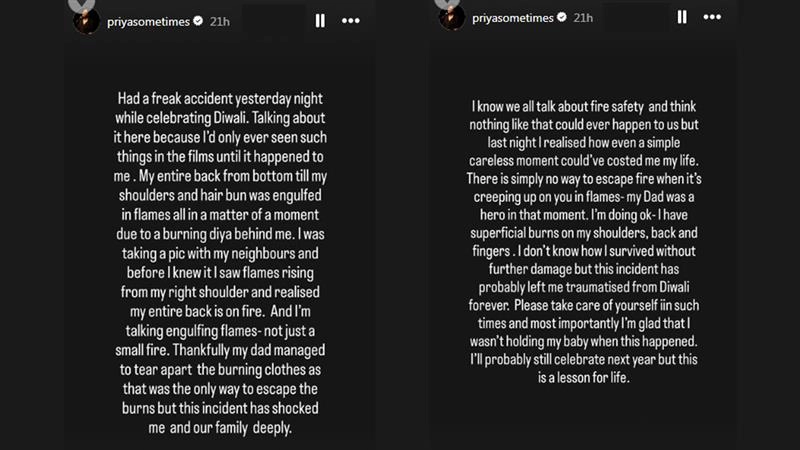 Priya went on to share how the incident made her realise how a "simple, careless moment" can be life-threatening, admitting that it has left her deeply shaken.