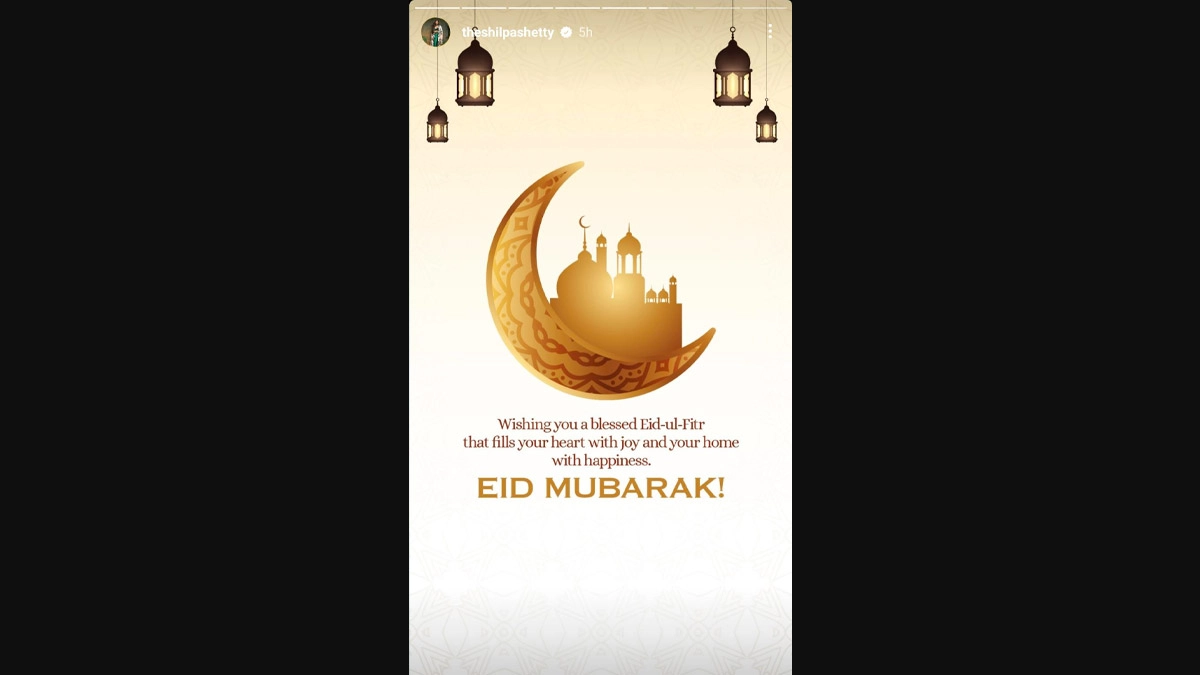 The world celebrates Eid-ul-Fitr today which marks the end of the holy month of Ramzan. From Bobby Deol to Allu Arjun, celebs took to their social media accounts to wish and greet everyone on this auspicious day. Taking to Instagram stories, Sunny Deol shared a special wish for fans celebrating Eid.Sharing the picture, he wrote, "May this #Eid bring you & abundant joy, peace & blessings.#EidMubarak aapko aur aapke parivar ko." Shilpa Shetty Kundra shared a photo with Eid greetings for her fans and followers worldwide. She wrote, "Wishing you a blessed Eid-ul-Fitr that fills your heart with joy and your home with happiness. EID MUBARAK!" Eid 2024: Aamir Khan Along With His Sons Junaid Khan and Azad Rao Khan, Delights Fans With Sweet Distribution and Greetings! (Watch Video).