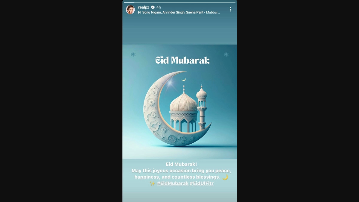 Shahid Kapoor extends warm wishes to his fans celebrating. Nushrratt Bharuccha wrote, "Eid Mubarak. May this Eid bring you and your loved ones countless blessings, happiness, and cherished moments to treasure forever." Rakul Preet Singh posted a picture of herself in a stunning saree along with Eid message. Sharing a beautiful mosque picture and a quote saying, "As the crescent moon marks the end of Ramadan, SAAKI extends heartfelt wishes to everyone across the globe. May this Eid usher in joy, prosperity, and peace for you all. Eid Mubarak," Samantha Ruth Prabhu wished fans. Mahesh Babu dropped a mosque picture under a crescent moon and a quote saying 'Eid Mubarak'.Preity Zinta posted a wish, which read, "Eid Mubarak! May this joyous occasion bring you peace, happiness, and countless blessings. #EidMubarak #EidUlFitr." Eid ul-Fitr 2024 Mubarak Wishes & Happy Eid Images: WhatsApp Stickers, Greetings, HD Wallpapers, Shayaris and SMS To Wish on Muslim Festival.