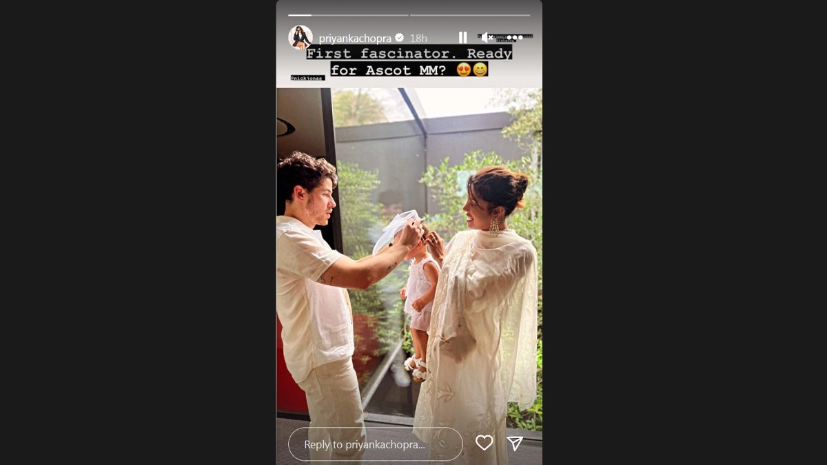 Actor Priyanka Chopra on Friday treated fans to adorable pictures of her daughter Malti Marie. In one of the images, Priyanka and her husband Nick Jonas are seen making their daughter try her first fascinator for attending the Royal Ascot. "First fascinator. Ready for Ascot MM?" Priyanka captioned the post. Royal Ascot is one of Britain's most well-known racecourses where Ascot holds a special week of races in June. Priyanka Chopra Reacts to Shah Rukh Khan's Comment on Not Moving to Hollywood, Says 'Comfortable is Boring’ (Watch Video).