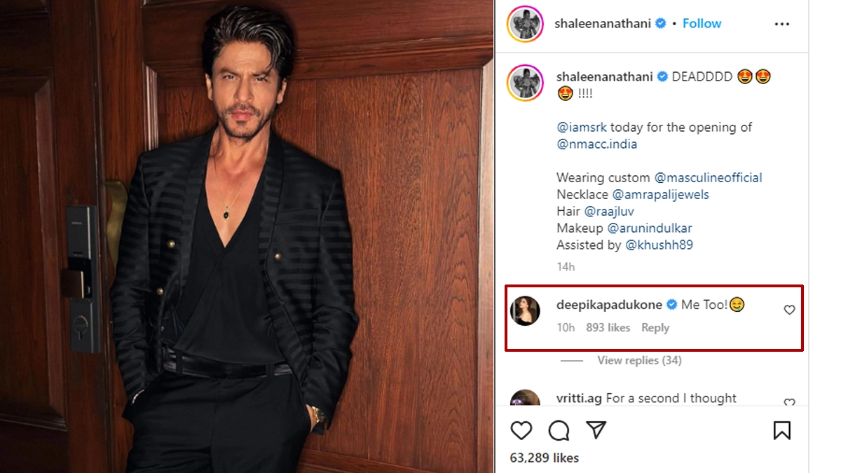 Sharing the pictures, Shaleena wrote, "DEADDDD!!!! @iamsrk today for the opening of @nmacc.india..." Reacting to the pictures Deepika wrote, "Me too!" She also posted a drool-worthy emoji with the comment. Shah Rukh looked absolutely dapper in his black suit. He sported a pendant with a black stone to complement the look. Though Shah Rukh was not present in the family frame, it was Salman Khan who joined Gauri Khan, Aryan Khan and Suhana Khan for a special photo-op at the event. Shah Rukh Khan Looks Smoking Hot in Black Coat at the Nita Ambani Cultural Centre Launch (View Pic).