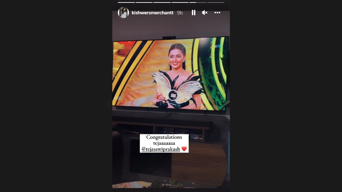 Mumbai, January 31: As actor Tejasswi Prakash lifted the 'Bigg Boss' Season 15 trophy, several friends and celebrities shared congratulatory messages on social media. Kishwer Merchant took to her Instagram Story and shared a glimpse of the 'BB 15' winner with the trophy. She wrote, "Congratulations tejaaaaaaa @tejasswiprakash," with a red heart emoji. Tejasswi Prakash Wins Bigg Boss 15, Actress Poses With Her Parents And Says ‘The Trophy Comes Home’.