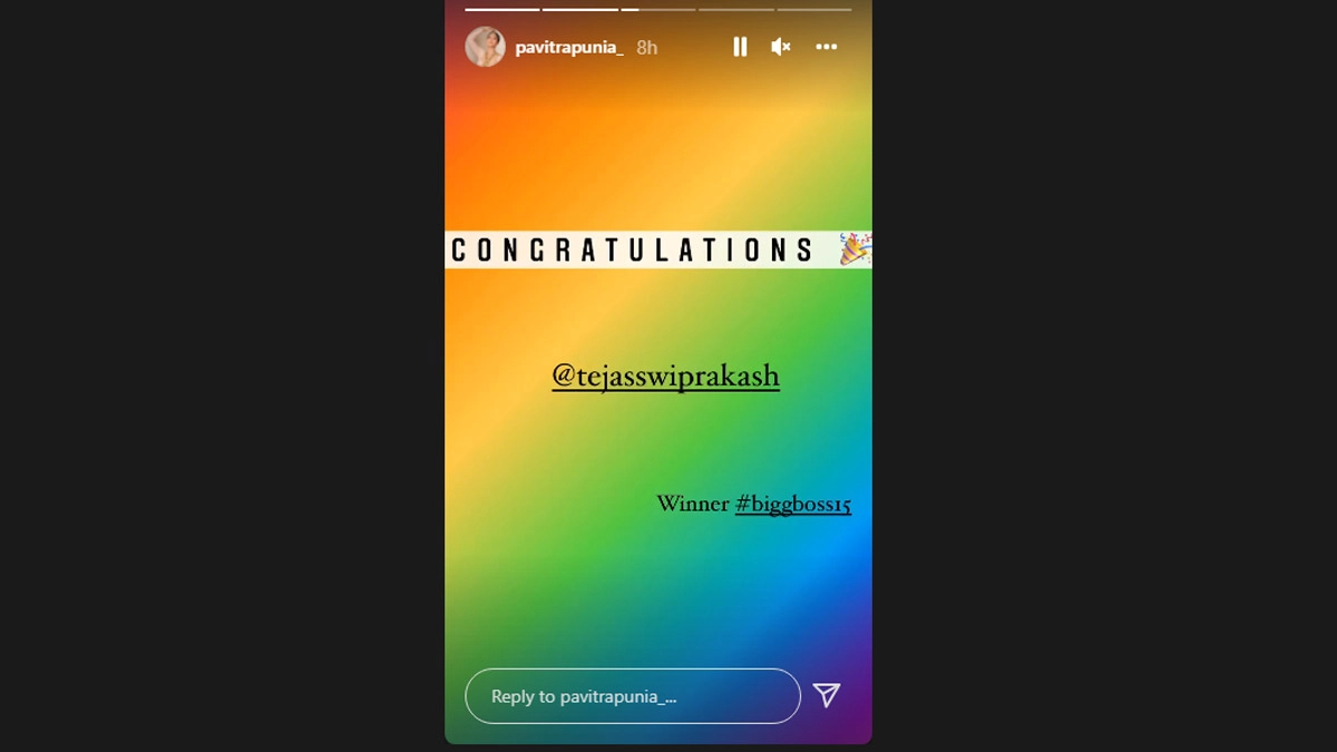 Pavitra Punia also congratulated the actor by writing, "Congratulations @tejasswiprakash. Winner #biggboss15," on her Instagram Story.