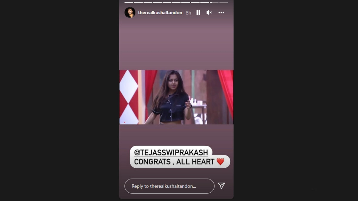 Kushal Tandon shared a still of Tejasswi in the 'Bigg Boss' house and wrote, "@tejasswiprakash congrats all heart."