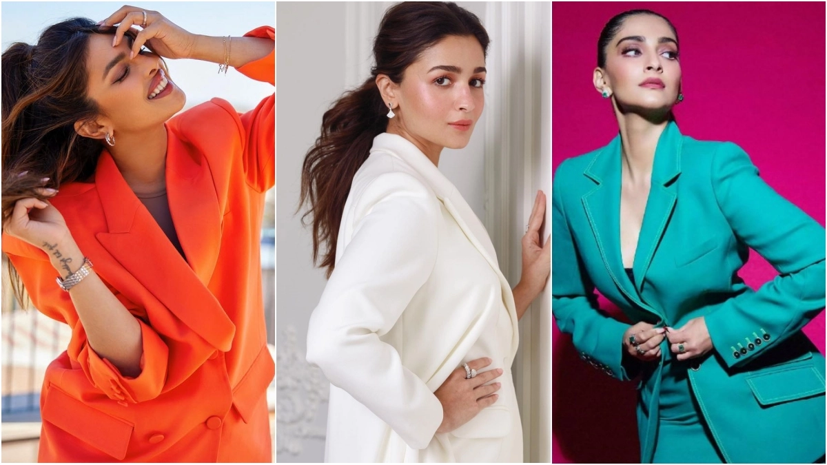 You can wear an orange, white or green pantsuit or three-piece co-ord sets with utmost grace and style. And compliment the look with chic accessories, including an oversized pearl choker necklace and matching rings or bracelets.
