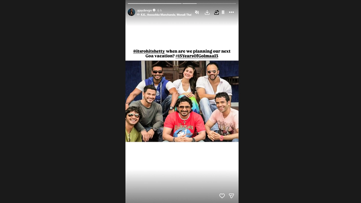 "@itsrohitshetty when are we planning our next Goa vacation?#15YearsOfGolmaal3," he wrote in the Instagram story, teasing that the team might be finally moving on with the project in the coastal town.