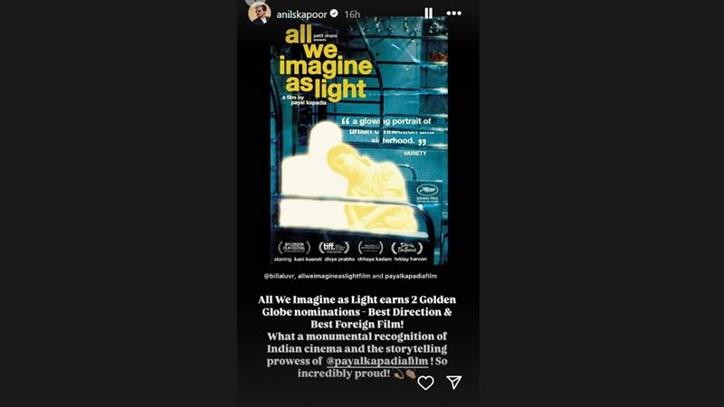 After All We Imagine... film was announced as one of the nominees in the Best Motion Picture Non-English Language category, the official Instagram page of the film posted: "Honoured to be in the company of such incredible films from around the world."