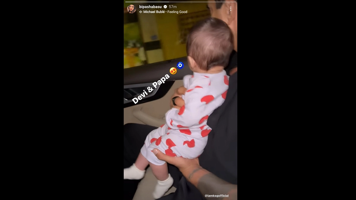 Actor Bipasha Basu often shares cute pictures and videos of her daughter Devi Basu Singh Grover on her social media. On Monday, the actor shared an adorable video of her daughter enjoying a car ride with father Karan Singh Grover. Taking to Instagram, Bipasha shared the video on her stories and captioned it, "Devi and Papa." Bipasha Basu Gives Her Fans a Sneak Peek Into Her Daughter Devi’s Pink and White Nursery, and It Is Simply Too Cute to Miss! (Watch Video).