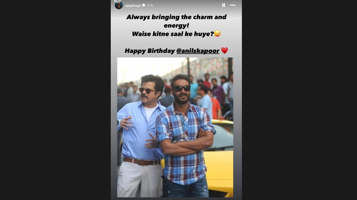 Ajay Devgn lauded the Beta actor for always being full of energy and charm. He shared a candid photo of themselves in which Ajay is seen standing with folded hands while Anil talks in the background.