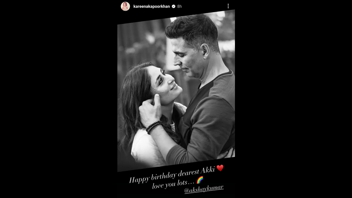 As Bollywood actor Akshay Kumar celebrates his birthday, warm wishes have been pouring in from fans and friends alike. Among those who wished him was Kareena Kapoor, his co-star from several films, including Good Newz. Kareena took to Instagram Stories to share an adorable birthday message for Akshay.