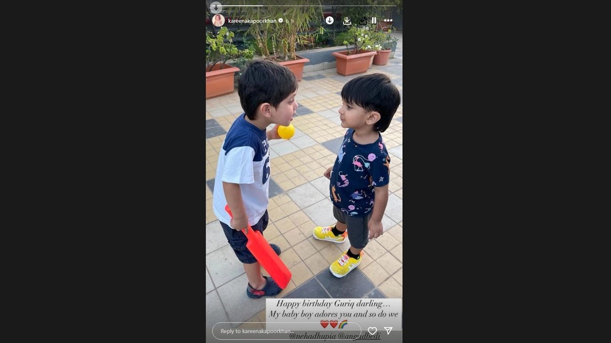 Actor Kareena Kapoor Khan's latest Instagram post is filled with cuteness as it showcases the adorable bond between her son Jeh and Neha Dhupia's child Guriq. Taking to Instagram, Kareena dropped a sweet post to extend warm birthday greetings to Neha and Angad Bedi's son Guriq. Kareena Kapoor Khan Shows You How to Comfort Dress Like a Celeb; Times When She Slayed in Simple Shirts (View Pics).