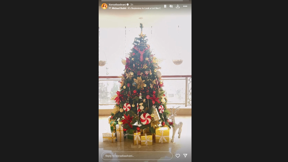 Celebrity couple Kiara Advani and Sidharth Malhotra are all set to celebrate their first Christmas together after getting married. The Satyaprem Ki Katha actor shared a sneak peek of her preparation on Sunday. Kiara took to her Instagram story and treated fans to a glimpse of a beautifully decorated Christmas tree, set up on their balcony, adorned with gifts, candies, reindeers, Santa Claus figurines, and a golden star on top, with Merry Christmas banner. Soni Razdan Preps for Christmas 2023! Baby Raha’s Grandma Shows Off Customised Xmas Tree Ornaments on Insta.