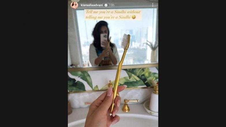 Actor Kiara Advani's latest Instagram post will leave you in splits. Giving a sneak peek into her Sindhi lifestyle, she posted a picture of a "golden" toothbrush. ‘Game Changer’: New Poster Unveils Kiara Advani’s Glamorous Look As Jabilamma Ahead of Teaser Release (View Pics).