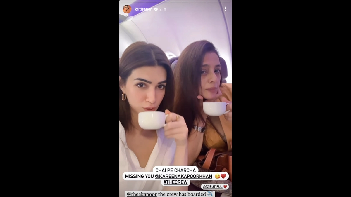 The Heroine actor is a.ll set to join the cast of The Crew in Goa soon.Responding to Kareena's message, Kriti wrote, "Umm.. we will have to manage with Goa ke biscuits! @tabutiful finished the Dilli wala box. #CrewKiChai." Apart from their fuun banter, the 'Mimi' actor also shared a selfie on her story and captioned it, "Goa. #TheCrew." The Crew stars Kareena Kapoor Khan, Tabu, Kriti Sanon and Diljit Dosanjh in the lead roles. It is a story of three women and is touted as a laugh-riot, set against the backdrop of the struggling airline industry.