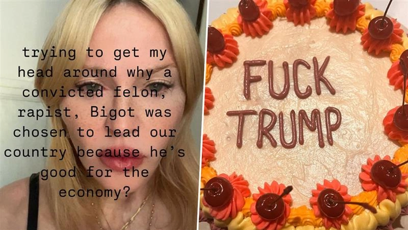 Singer Madonna is processing her emotions after the 2024 US presidential election results, and it looks like cake is her comfort food of choice. Following the news of Donald Trump's victory, the iconic pop star took to Instagram to share a moment of catharsis, posting an image of a colourful "f-k Trump" cake she indulged in to cope with the outcome. In her Instagram story, Madonna, playfully captioned the image, "Stuffed my face with this cake last night!" The cake, decorated with vibrant shades of orange, yellow, and brown buttercream, and topped with cherries, clearly served as her personal statement in the wake of the election result. Olivia Rodrigo Removes Viral Trending Song ‘Deja Vu’ From Viral TikTok Video Celebrating Donald Trump’s US Presidential Election 2024 Victory.