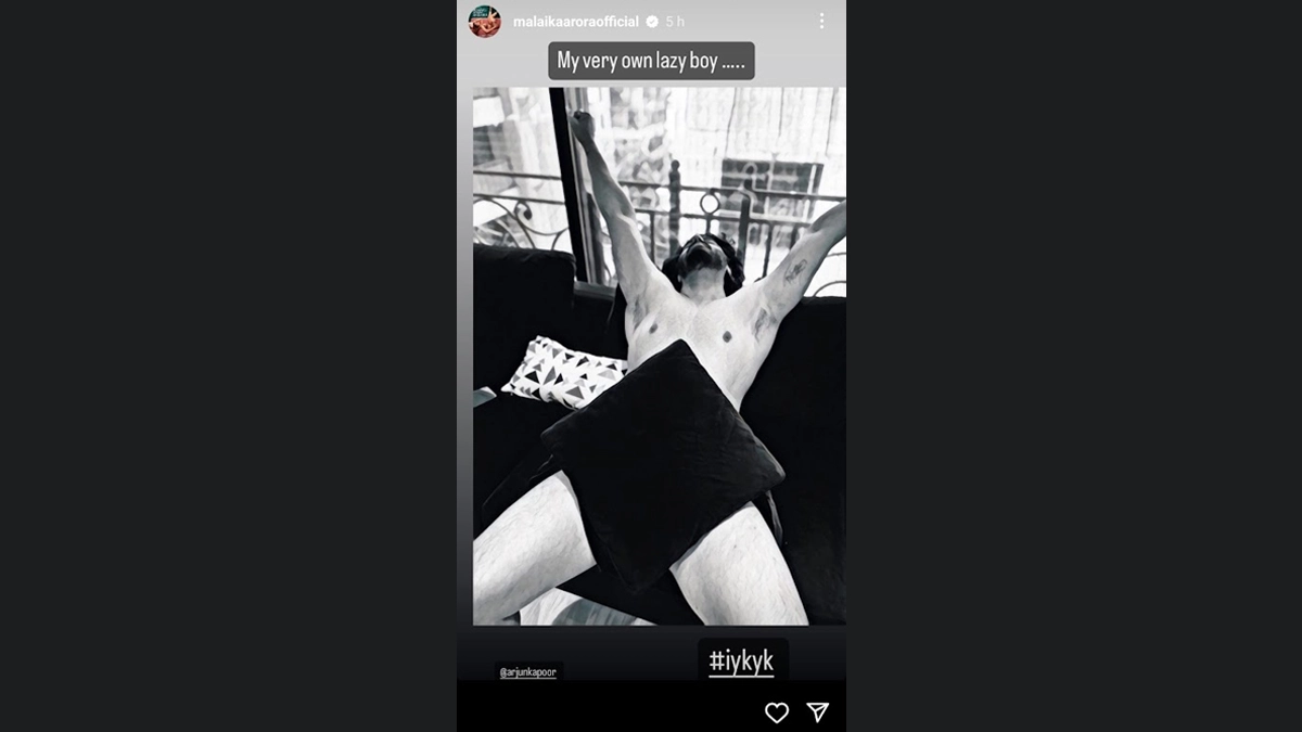 On Sunday, Bollywood diva surprised fans by sharing a semi-naked picture of her boyfriend and actor Arjun Kapoor. The black-and-white image shows Arjun stretching out his arms on a couch. "My very own lazy boy," Malaika captioned the post, adding the hashtag "iykyk." Malaika Arora Drops A Semi-Naked Picture Of Her Beau, Arjun Kapoor, Calls Him 'Lazy Boy' (View Pic).