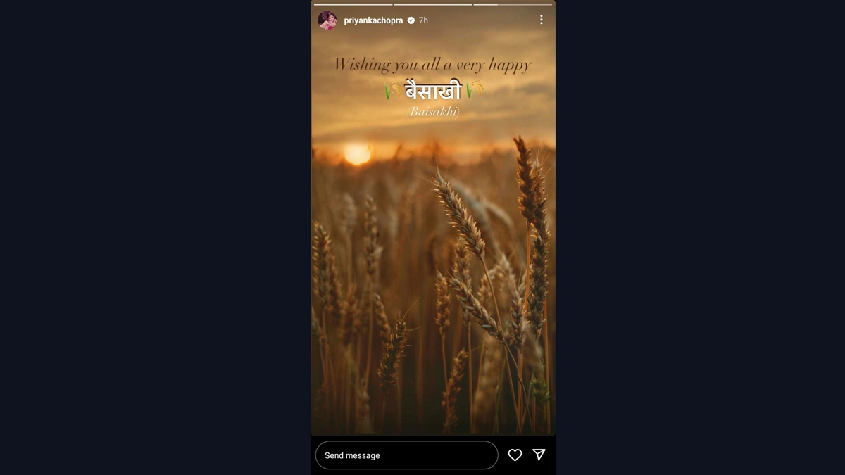 Taking to Instagram stories, Priyanka wrote, "Wishing you all a very happy Baisakhi." Shilpa Shetty Kundra dropped a warm Baisakhi wish on her Instagram stories, which wrote, "May the blessings of waheguru be with you always. Baisakhi diyaan lakh lakh wadhaiyaan saareyaan nu!" Sunny Deol prayed for everyone's joy, prosperity and peace by greeting Baisakhi. His wish featured an animated Sardar character dancing happily along with a beautiful message, which read, "May Waheguru bless you with, peace, love and success." Sharing a beautiful picture of herself in a suit along with a sweet Baisakhi wish for her fans. Baisakhi 2024: From Shah Rukh Khan's 'Aisa Des Hai Mera' To Kangana Ranaut's 'London Thumakda', Here's Top 5 Bollywood Song Perfect To Celebrate Harvest Festival.