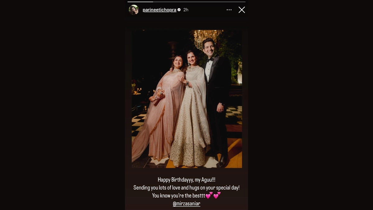 B-town actors shared a healthy bond with former tennis player Sania Mirza and have extended their wishes on her birthday. On the occasion, Parineeti Chopra took to her Instagram stories and shared a cute post for her friend.Parineeti dropped a picture with Sania and her husband Raghav Chadha from her wedding festivities and captioned it, " Happy birthday my aggu!! Sending you lots of love and hugs on your special day! You know you're the best." Actor Anushka Sharma took to Instagram stories and shared a picture of Sania and wrote, "Happy birthday Sania! Wishing you and light always." Sania Mirza Congratulates Newlyweds Parineeti Chopra-Raghav Chadha, Shares Photo on Insta.