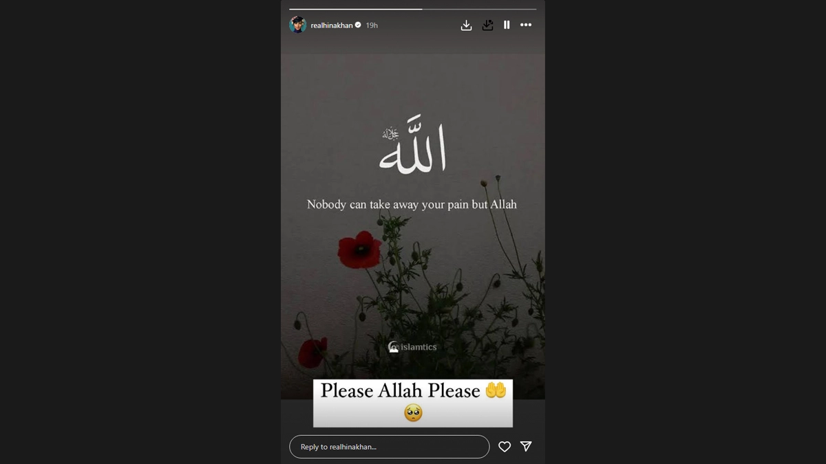 Taking to her Instagram Stories, Hina shared a post that read, "Nobody can take away your pain but Allah." Over this, she wrote, "Please Allah Please." Earlier this month, the actress posted a video of herself with a short haircut.