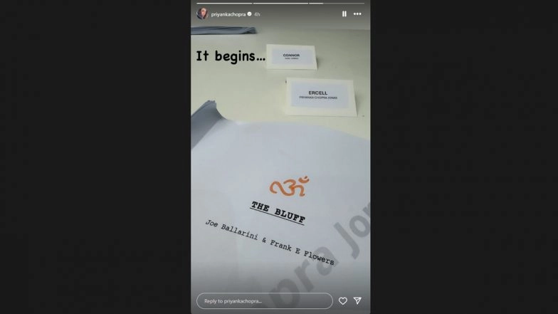 Actor Priyanka Chopra is in Australia for the shoot of her new project, The Bluff. On Friday, Priyanka took to Instagram, shared a picture of her script and expressed excitement about the shoot. "It begins...," she captioned the post. One can also see "Om" written on the script. 'The Bluff' is being directed by Frank E Flowers. Priyanka Chopra Almost FALLS As Her Heels Get Stuck in an Elevator, Video From Actress’ Latest Photoshoot Goes Viral – WATCH.