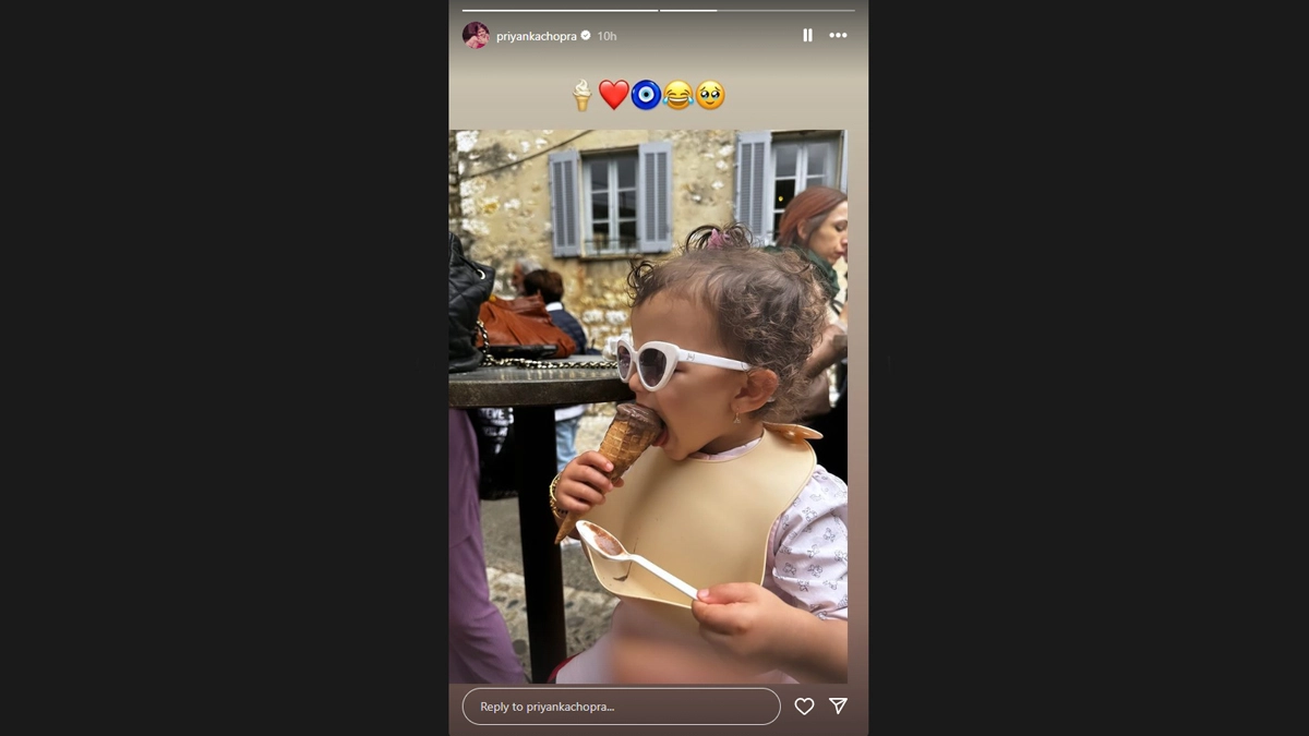 Actor Priyanka Chopra Jonas dropped a cute picture of her daughter Malti Marie enjoying her ice cream. Taking to Instagram stories on Sunday, Priyanka gave fans glimpses of her day with Malti. Malti can be seen engrossed in having ice cream and holding the spoon in the other hand. Priyanka wrapped a silicone food-catching bib over her neck. Just like her mom, Malti's fashion game is on point. She wore a pink printed outfit and didn't miss her sunglasses. Baby Malti Marie Enjoys Ice Cream in New Aww-Dorable Photo Shared by Priyanka Chopra on Insta!