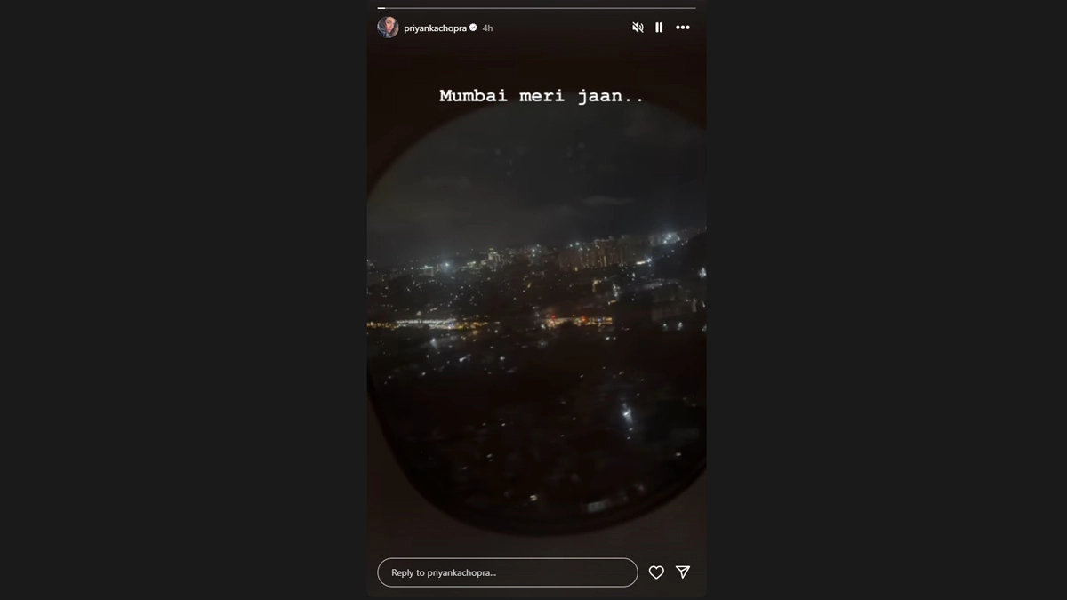 Taking to her Instagram stories, Priyanka shared a video from her aeroplane window seat showcasing the glittering lights of the financial capital of India.