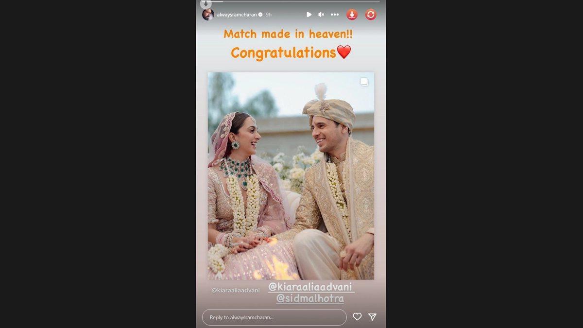 RRR actor Ram Charan wrote, "Mach made in Heaven. Congratulations."