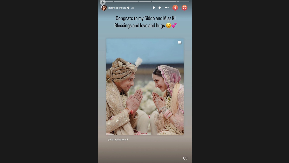 Parineeti Chopra wrote, "Congrats to my Siddo and Miss K. Blessings and love and hugs!"