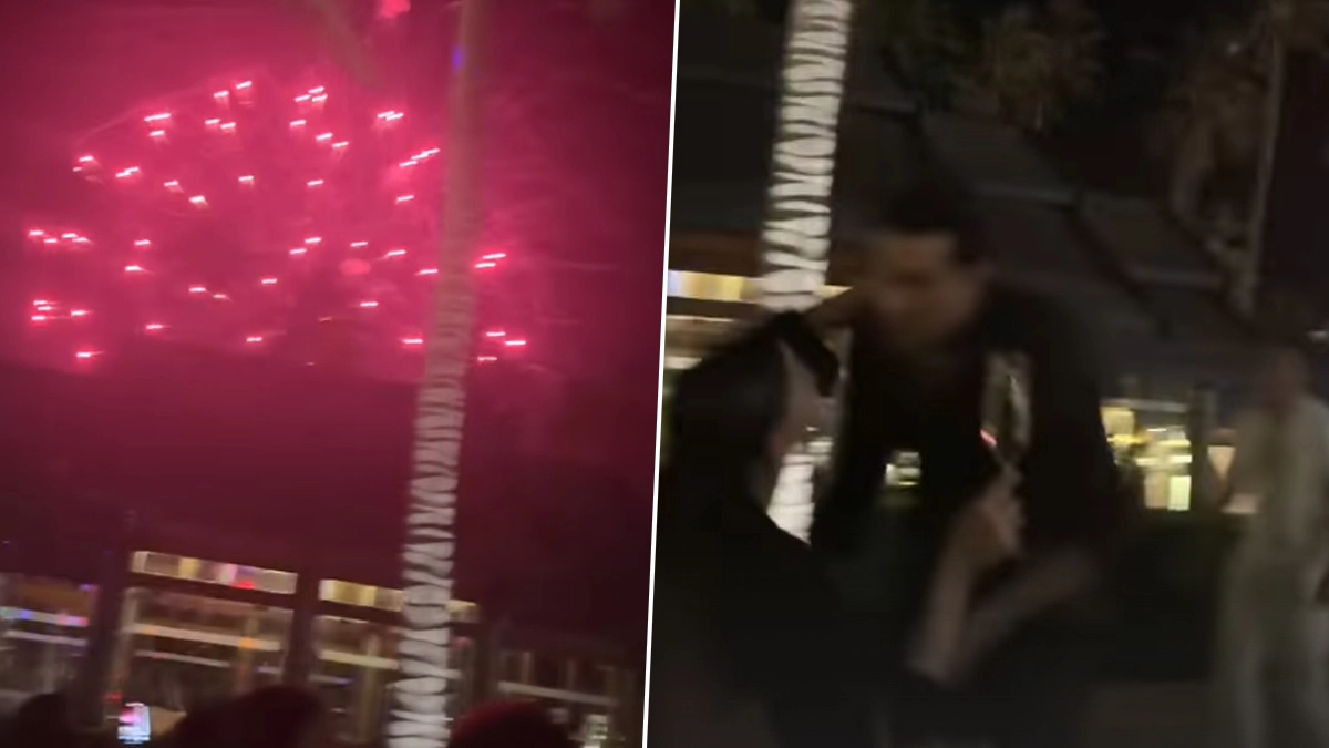 The couple's joyous reaction was accompanied by the mesmerizing display of fireworks lighting up the night sky.