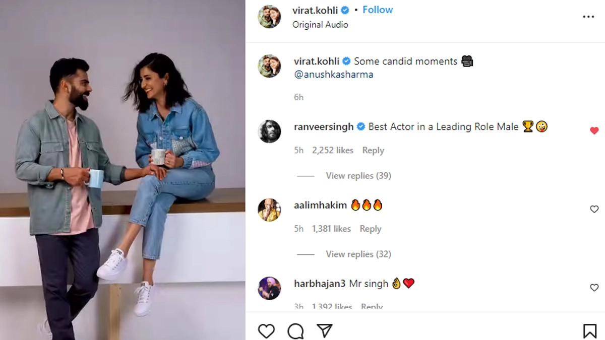 Bollywood star Ranveer Singh complimented Virat Kohli's acting skills in a recent BTS video, shared by the Indian Cricketer with his wife Anushka Sharma. On Friday, Cricketer Virat Kohli took to his Instagram handle, and posted a BTS video with his wife Anushka Sharma, "Some candid moments" he captioned the video. Anushka Sharma Shares a Happy Selfie With Hubby Virat Kohli From Their Summer Vacation.