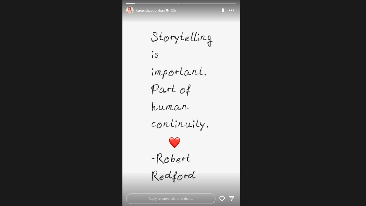 Mourning his loss, actor Kareena Kapoor shared a quote from Redford on her Instagram story. She wrote, 'Storytelling is important. Part of human continuity' - Robert Redford."