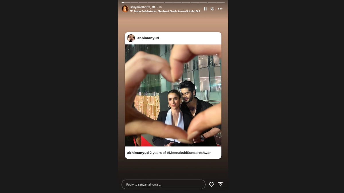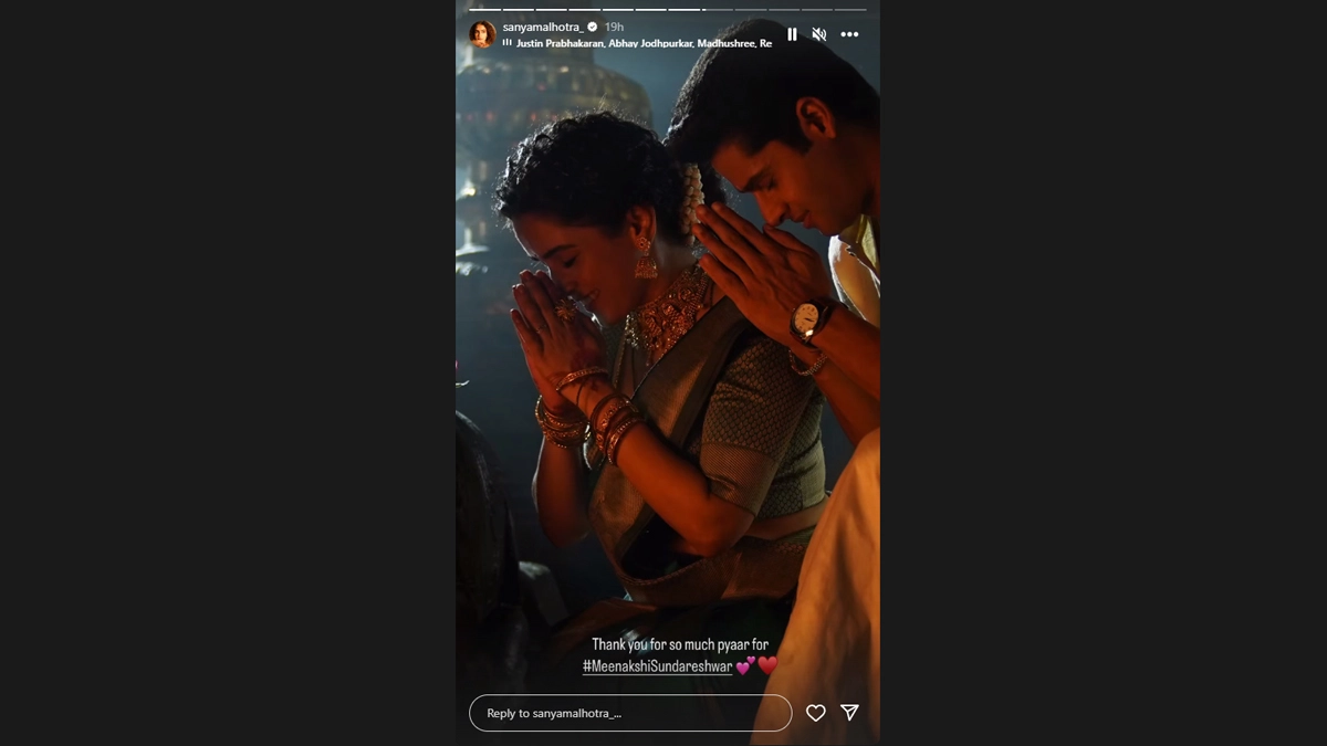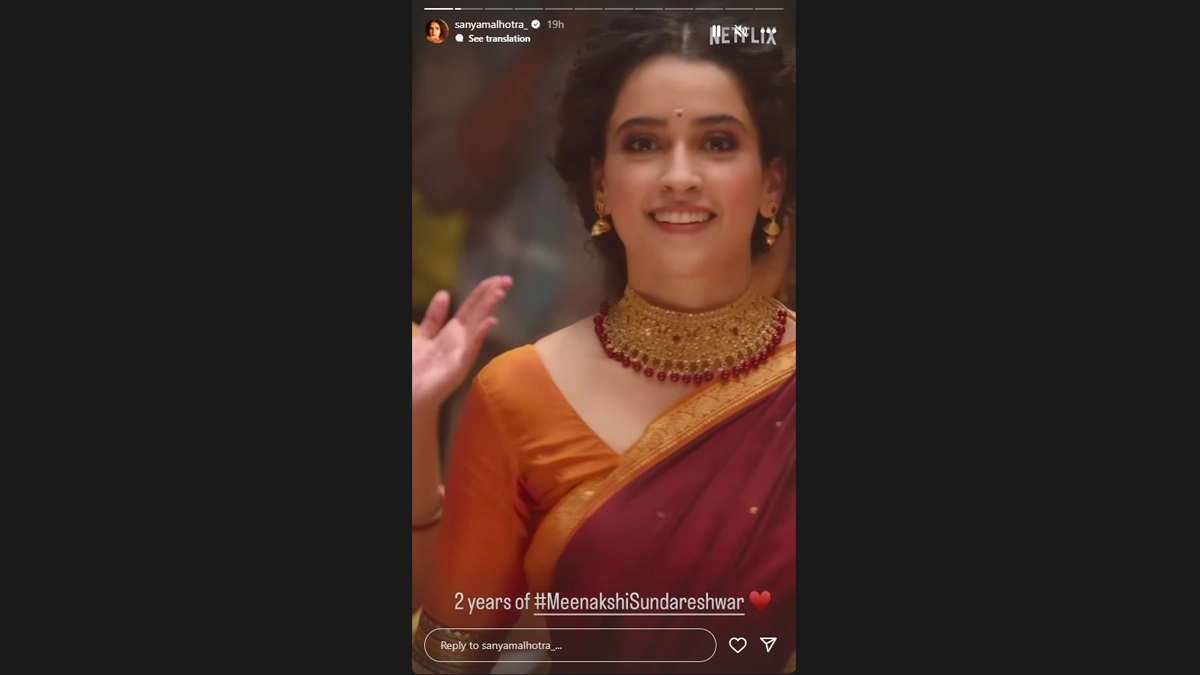 Actor Sanya Malhotra expressed gratitude on Sunday as her film MeenakshiSanya Malhotra Sundareshwar clocked 2 today. Taking to Instagram, Sanya shared a series of pictures and clips from the film and captioned it, "2 years to Meenakshi Sundareshwar [?]" She also posted a picture with director Vivek Soni from the sets and wrote, "Kaafi soch vichar mein @vivek.sonni" Sanya also dropped a photo of her co-star Abhimanyu and wrote, "Hello Sundareshwar." And at the end expressed gratitude for the love. She posted, "Thank you for so much pyaar for #MeenakshiSundareshwar." In the movie, Sanya and Abhimanyu play Meenakshi and Sundareshwar, a newly-wed couple. Sanya Malhotra Loves Flaunting Her Midriff; 5 Pictures That Prove This!.