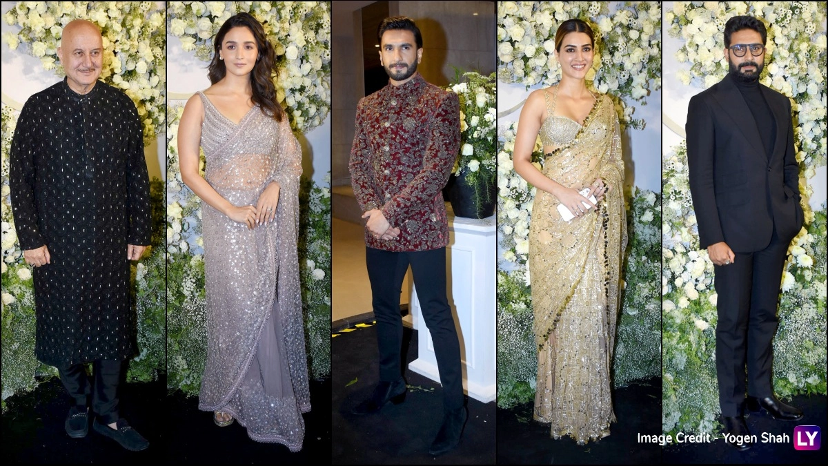 Mumbai, February 12: Among those to arrive early were Abhishek Bachchan, Kareena Kapoor, Karan Johar, Anupam Kher, Alia Bhatt, Ajay Devgn, Kajol and Ashutosh Gowarikar. Kareena wore a beautiful pink sequinned saree and walked in with her close friend and director Karan Johar. Karan, on the other hand, opted for a classic white tuxedo.
