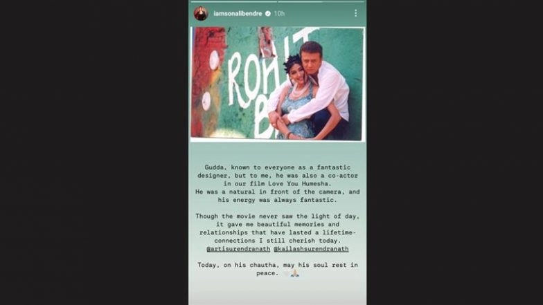 In fond memory of late designer Rohit Bal, actor Sonali Bendre on Monday paid a heart-touching tribute to him. Taking to Instagram Story, Sonali revealed that Rohit once shared screen space with her as an actor in the film Love You Humesha, which never released in the theatres. Rohit Bal Passes Away: Arjun Rampal and His Girlfriend Gabriella Demetriades Attend the Legendary Fashion Designer’s Funeral (Watch Video).